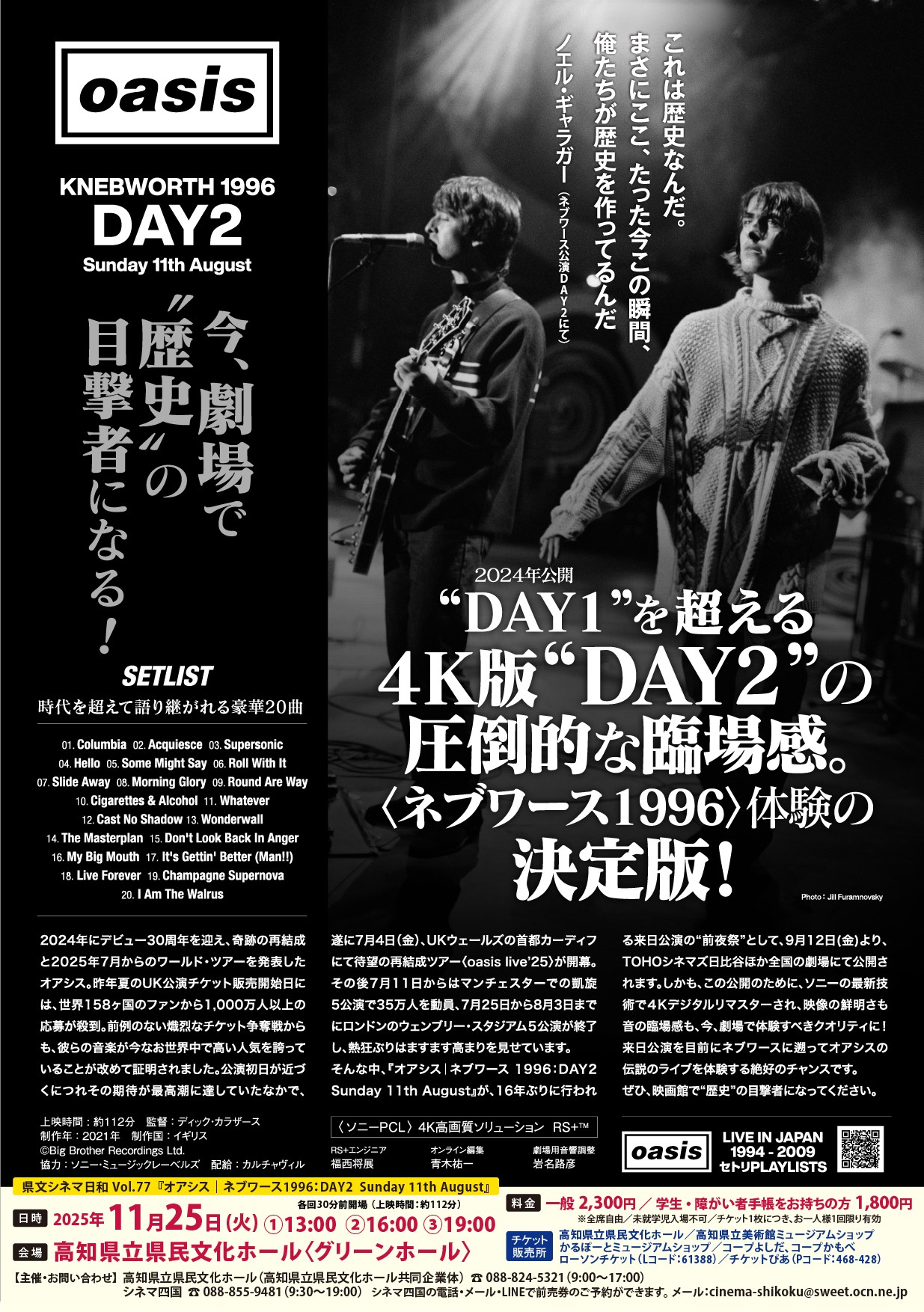 県文シネマ日和Vol.77 「オアシス|ネブワース1996:DAY2 Sunday 11th August」