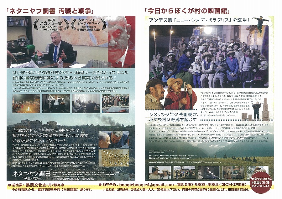ゴトゴトシネマ上映会「ネタニヤフ調書」 「今日からぼくが村の映画館」 「ヒポクラテスの盲点」